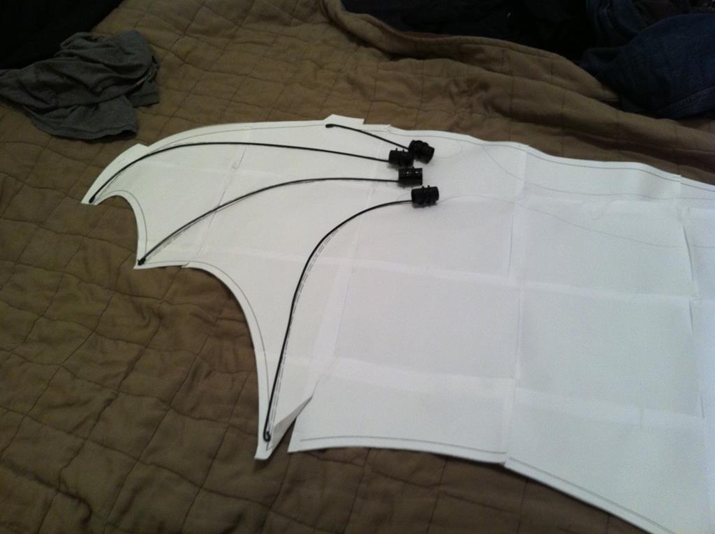 I used velour again for the wings, though I unfortunately didn’t get enough to make them have the same bias direction, which made them slightly asymmetrical when open. I reused the finger extensions from the old costume.